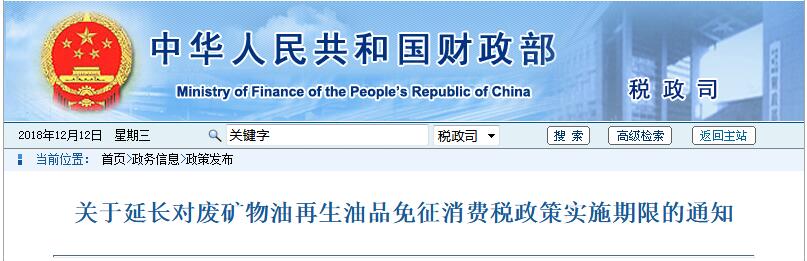 日前,財政部發(fā)布通知,《財政部 國家稅務(wù)總局關(guān)于對廢礦物油再生油品免征消費稅的通知》(財稅〔2013〕105號)實施期限延長5年,詳情如下:財稅〔2018〕144號各省、自治區(qū)、直轄市、計劃單列市財政廳(局),國家稅務(wù)總局各省、自治區(qū)、直轄市、計劃單列市稅務(wù)局,新疆生產(chǎn)建設(shè)兵團財政局:為進一步促進資...