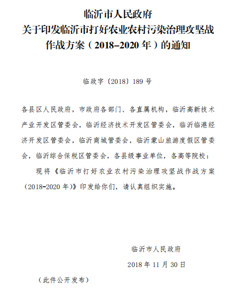 近日,臨沂市人民政府發(fā)布關(guān)于印發(fā)臨沂市打好農(nóng)業(yè)農(nóng)村污染治理攻堅戰(zhàn)作戰(zhàn)方案(2018-2020年)的通知,方案要求,到2020年,全市農(nóng)村人居環(huán)境明顯改善,基本實(shí)現(xiàn)村莊規(guī)劃編制、生活垃圾收運(yùn)處置、無害化衛(wèi)生廁所改造全覆蓋,生活污水處理率大幅提高,村容村貌明顯改觀。詳情如下: