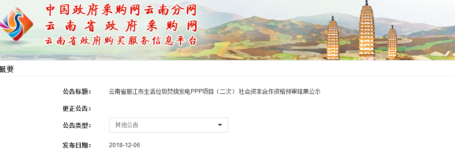 中國環(huán)聯(lián)網(wǎng)獲悉,12月6日,云南省麗江市生活垃圾焚燒發(fā)電PPP項目(二次) 社會資本合作資格預(yù)審結(jié)果公示出爐。資格預(yù)審入圍單位包括康恒環(huán)境、北京環(huán)境、中國環(huán)保、三峰環(huán)境等,具體名單如下(排名不分先后):此前,該項目已經(jīng)經(jīng)歷過兩次招標(biāo)和一次流標(biāo),中國環(huán)聯(lián)網(wǎng)帶大家回顧下項目進(jìn)展。8月31日,該項目發(fā)布招...