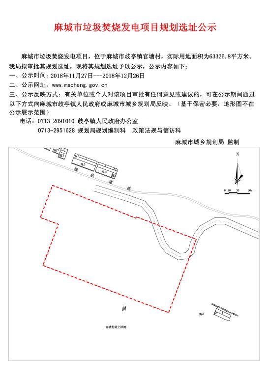 日前,湖北麻城市公示垃圾焚燒發(fā)電項(xiàng)目規(guī)劃選址,項(xiàng)目主要建設(shè)內(nèi)容為日處理生活垃圾1200噸,年處理垃圾42.9萬(wàn)噸的垃圾焚燒電廠,配置2×600t/d機(jī)械爐排焚燒爐+2×12MW 凝汽式汽輪機(jī)組。同步建設(shè)煙氣處理、滲濾液收集、廢水處理、飛灰處置等環(huán)保設(shè)施。公示如下: