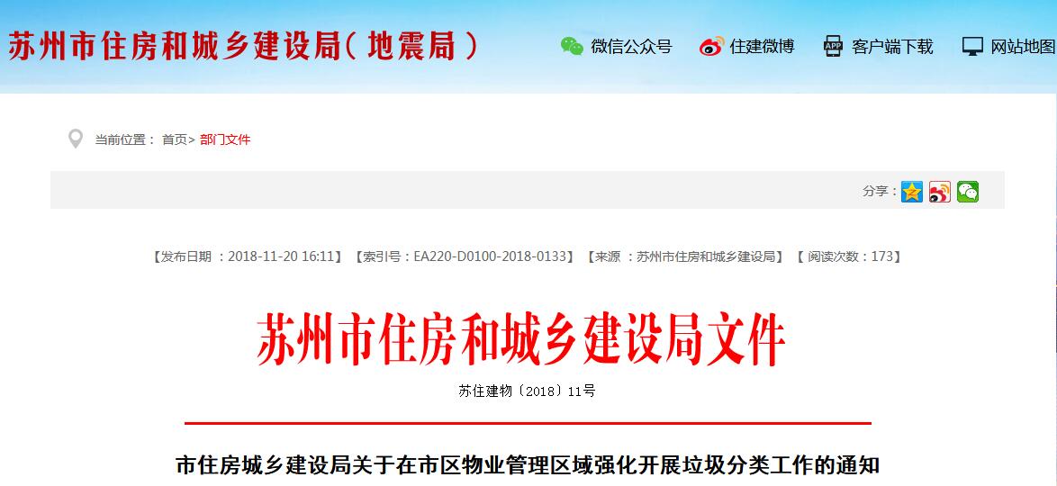 日前,蘇州市住建局發(fā)布了關(guān)于在市區(qū)物業(yè)管理區(qū)域強(qiáng)化開展垃圾分類工作的通知,詳情如下:各區(qū)住建局,姑蘇區(qū)住建委,蘇州工業(yè)園區(qū)規(guī)建委;各物業(yè)服務(wù)企業(yè):蘇州是全國(guó)首批26個(gè)生活垃圾分類示范城市(區(qū))之一,推進(jìn)垃圾分類,既是衡量城市文明程度的重要指標(biāo),也是建設(shè)美麗宜居名城的內(nèi)在要求。去年,市政府辦公室印發(fā)了...