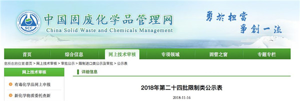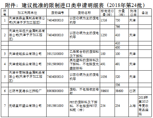 日前中國(guó)固廢化學(xué)品管理網(wǎng)發(fā)布了《建議批準(zhǔn)的限制進(jìn)口類申請(qǐng)明細(xì)表(2018年第24批)》,其中涉及30家企業(yè)具體內(nèi)容如下: