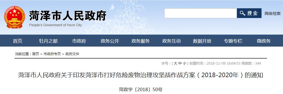 日前,菏澤市政府印發(fā)了《菏澤市打好危險廢物治理攻堅戰(zhàn)作戰(zhàn)方案(2018-2020年)》,《方案》提出,到2020年,全市建立起較為完善的危險廢物收集、貯存、運輸、利用和處置體系。市級以上重點產(chǎn)生危險廢物企業(yè)在危險廢物暫貯庫和危險廢物產(chǎn)出設施位置全部安裝視頻監(jiān)控,并與市、縣區(qū)環(huán)境保護監(jiān)管部門聯(lián)網(wǎng)。危險...