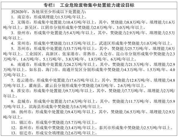 日前,江蘇省政府辦公廳發(fā)布了關于加強危險廢物污染防治工作的意見,其中提到:到2020年,全省基本建立與經(jīng)濟和社會發(fā)展相適應的危險廢物處置體系,處置能力和實際需求基本匹配;形成較為完善的源頭嚴防、過程嚴管、違法嚴懲的危險廢物監(jiān)管體系,危險廢物規(guī)范化管理水平和環(huán)境監(jiān)管能力明顯提升,全省危險廢物規(guī)范化管理...