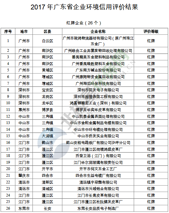 日前廣東省生態(tài)環(huán)境廳發(fā)布了《廣東省生態(tài)環(huán)境廳關于通報廣東省2017年企業(yè)環(huán)境信用評價結(jié)果的通知》,經(jīng)評定,1162家國家重點監(jiān)控企業(yè)中,除64家企業(yè)因全年停產(chǎn)(運)、關閉等原因不參評外,1098家企業(yè)以組織機構(gòu)代碼證/統(tǒng)一社會信用代碼為準最終確認1060家參加評價(即有65家經(jīng)合并后為27家),其中...