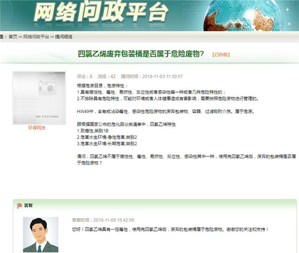 四氯乙烯廢棄包裝桶是否屬于危險廢物?根據(jù)危廢目錄,危廢特性:1.具有腐蝕性、毒性、易燃性、反應(yīng)性或者感染性等一種或者幾種危險特性的;2.不排除具有危險特性,可能對環(huán)境或者人體健康造成有害影響,需要按照危險廢物進(jìn)行管理的。HW49中,含有或沾染毒性、感染性危險廢物的廢棄包裝物、容器、過濾吸附介質(zhì)。屬于...