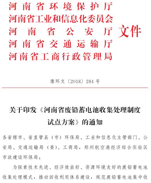 日前,河南省五部門聯(lián)合印發(fā)了《河南省廢鉛蓄電池收集處理制度試點(diǎn)方案》,《方案》提出,到 2018 年底,構(gòu)建廢鉛蓄電池集中收集、跨區(qū)域轉(zhuǎn)運(yùn)方式和全過程溯源管理模式,年底總結(jié)試點(diǎn)地區(qū)經(jīng)驗(yàn),在全省范圍內(nèi)推行。到 2019 年底,試點(diǎn)企業(yè)落實(shí)廢鉛蓄電池規(guī)范化管理制度,建成廢鉛蓄電池逆向物流回收體系。到 2...