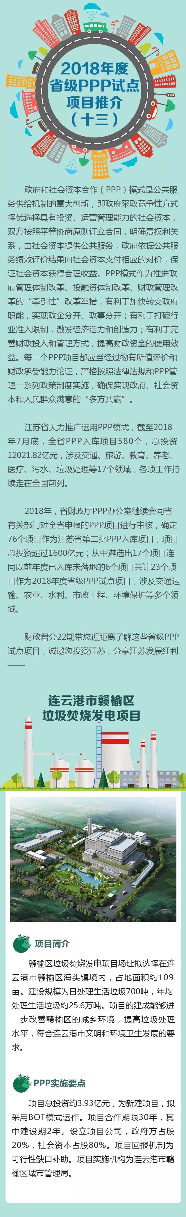 2018省級PPP試點(diǎn)項(xiàng)目推介之十三連云港市贛榆區(qū)垃圾焚燒發(fā)電項(xiàng)目2018省級PPP試點(diǎn)項(xiàng)目推介之十一新沂市生活垃圾焚燒發(fā)電項(xiàng)目原標(biāo)題:2018江蘇省級PPP試點(diǎn)項(xiàng)目推介(垃圾焚燒專場)