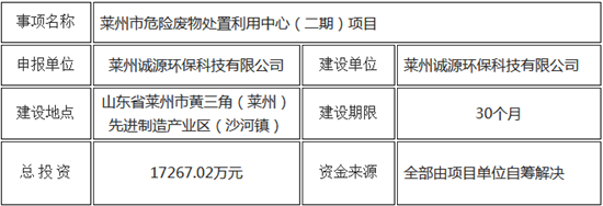 日前煙臺市發(fā)展和改革委員會發(fā)布了《關于萊州市危險廢物處理中心(一期)項目核準前公示核準前公示》,公示顯示該項目地址位于山東省萊州市黃三角(萊州)先進制造產業(yè)區(qū)(沙河鎮(zhèn)),建設內容包括罐區(qū)、固化暫存庫、綜合利用暫存庫、物化車間、綜合利用車間、固化車間(化驗室)、廢氣處理車間、污水處理站等??偼顿Y105...