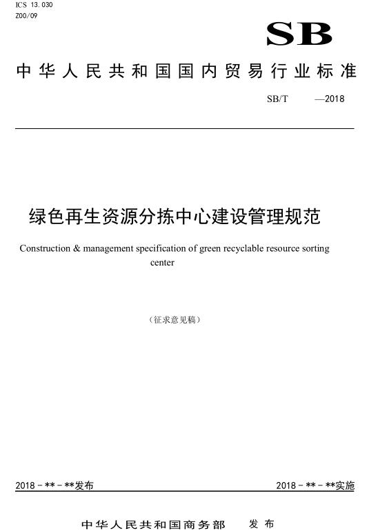 日前,商務部公布了《綠色再生資源分揀中心建設管理規(guī)范》(征求意見稿),詳情如下:關于《綠色再生資源分揀中心建設管理規(guī)范》行業(yè)標準公開征求意見的函有關行業(yè)協(xié)會、有關單位、有關企業(yè):中國再生資源回收利用協(xié)會2017年申報修訂的《綠色再生資源分揀中心建設管理規(guī)范》標準已完成起草工作。為保證標準的科學性、嚴...