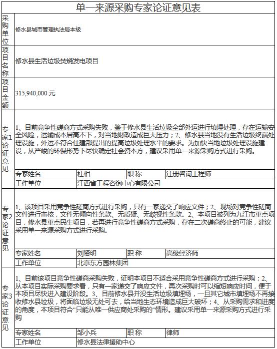 修水縣生活垃圾焚燒發(fā)電項目采用單一來源方式采購,該項目擬由中國光大國際有限公司提供原廠軟硬件產品技術支持服務?,F(xiàn)將有關情況向潛在政府采購供應商征求意見。征求意見期限從2018年11月05日起至2018年11月12日止。潛在政府采購供應商對公示內容有異議的,請于公示期滿后兩個工作日內以實名書面(包括聯(lián)...