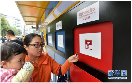 11月5日,竹西社區(qū)居民體驗(yàn)操作智能垃圾分類回收箱。當(dāng)日,江蘇省揚(yáng)州市垃圾分類市民卡積分兌換平臺(tái)在邗江區(qū)竹西社區(qū)正式上線運(yùn)行,該“互聯(lián)網(wǎng)+垃圾分類”數(shù)據(jù)平臺(tái)將垃圾分類積分與市民卡綁定,居民刷市民卡再分類投放垃圾即可獲得積分,積分可以在“再生資源兌換超市”中兌換生活用品。 新華社發(fā)(莊文斌 攝)11月...