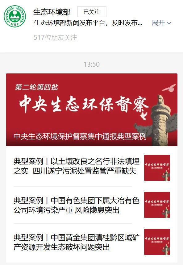 壹中央生態(tài)環(huán)保督察通報(bào)7起典型案例中央生態(tài)環(huán)保督察又通報(bào)典型案例了。9月6日下午,中央生態(tài)環(huán)保督察集中通報(bào)典型案例,對(duì)第二輪第四批督察發(fā)現(xiàn)的首批7起典型案例進(jìn)行集中公開(kāi)通報(bào)。在這一批督察中,共組建了7個(gè)督察組,分別對(duì)吉林、山東、湖北、廣東、四川5個(gè)省,以及中國(guó)有色礦業(yè)集團(tuán)有限公司、中國(guó)黃金集團(tuán)有限公...