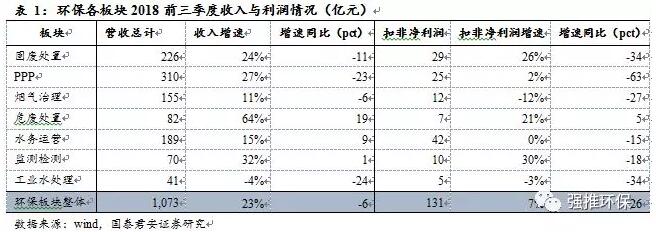摘要危廢、固廢與監(jiān)測板塊維持強勁增長2018前三季度環(huán)保行業(yè)整體①營業(yè)收入1073億元,同比增長23%,增速同比回落6pct,Q3單季收入391億元,同比增15%;②前三季度環(huán)保板塊實現(xiàn)扣非凈利潤131億元,同比增7%,增速同比回落26pct,Q3單季扣非凈利潤50億元,同比增1%,增速回落29pc...