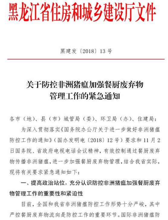 日前,黑龍江住建廳發(fā)布了關于防控非洲豬瘟加強餐廚廢棄物管理工作的緊急通知,《通知》指出,目前,全國和我省非洲豬瘟防控工作形勢十分嚴峻。國際非洲豬瘟防控實踐表明,餐廚廢棄物喂豬是非洲豬瘟傳播的重要途徑之一。各地要杜絕泔水喂豬,依據(jù)《黑龍江省食品安全條例》,建立健全餐廚廢棄物監(jiān)管機制,將餐飲經(jīng)營者和單位...