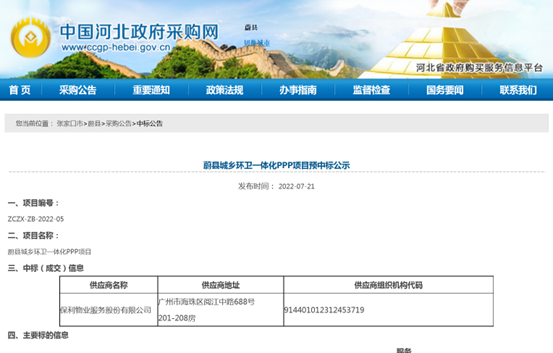 蔚縣項目是保利物業(yè)即將收獲的首個環(huán)衛(wèi)PPP項目,也是該公司首次問鼎10億+環(huán)衛(wèi)運營類政府采購大單。公告顯示,蔚縣城鄉(xiāng)環(huán)衛(wèi)一體化PPP項目采購預(yù)算159250.96萬元,預(yù)成交價58084233.75元/年(初始年服務(wù)費),合作期限24年2個月,合作內(nèi)容包括蔚縣城區(qū)及鄉(xiāng)鎮(zhèn)道路清掃保潔、灑水降塵、垃圾收...