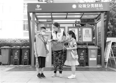 在北京市海淀區(qū)新科祥園社區(qū),社區(qū)工作人員(中)為“綠色明天”環(huán)保志愿小隊隊員李夢鴻一(右)、施柏涵介紹垃圾分類知識。新華社記者 任超攝住建部、生態(tài)環(huán)境部等6部委近日聯(lián)合印發(fā)《綠色社區(qū)創(chuàng)建行動方案》(以下簡稱《方案》),要求綠色社區(qū)創(chuàng)建要與居民自治機制建設(shè)、社區(qū)服務(wù)體系建設(shè)有機結(jié)合起來,營造社區(qū)宜居環(huán)...