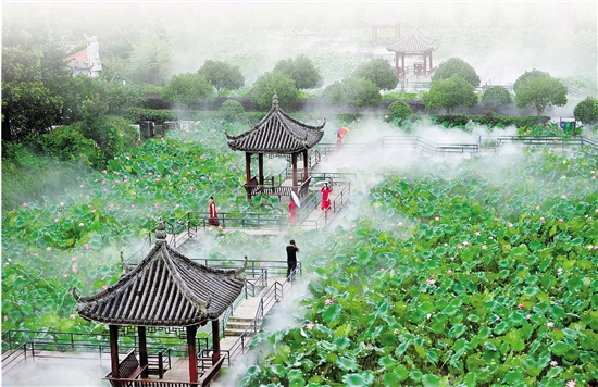 7月16日清晨6時(shí),陽(yáng)光灑向永康市舟山鎮(zhèn)端巖村端頭自然村的荷塘。攝影愛(ài)好者徐恭強(qiáng)來(lái)了:“今天5點(diǎn)起床,特意從城里趕過(guò)來(lái)拍照。”看著薄霧慢慢升起,他舉起相機(jī),定格美好瞬間?!白疃鄷r(shí),同時(shí)有180個(gè)攝影師來(lái)拍荷塘!”端巖村黨支部書(shū)記俞海從荷塘中央的連廊走來(lái),滿臉自豪。端頭村是個(gè)僅有146戶、398人的小...