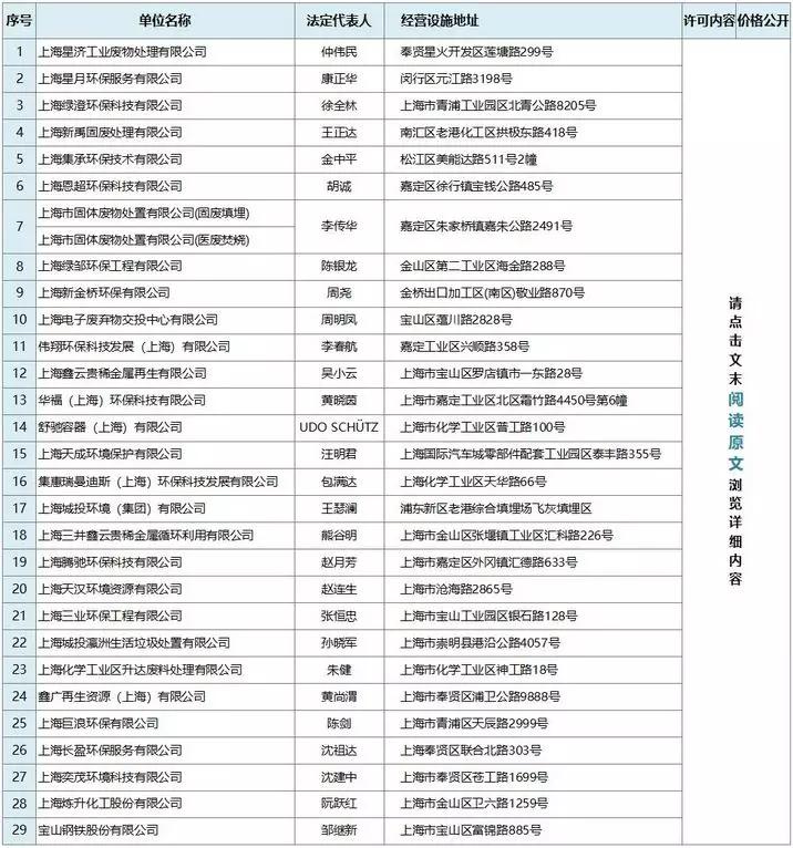 上海市關(guān)于危險(xiǎn)廢物經(jīng)營(yíng)許可證名單及價(jià)格公示