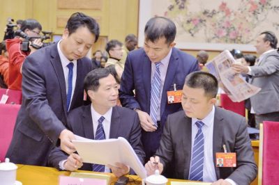 在湖北團(tuán)開放日活動結(jié)束后,部分“村支書代表”在一起熱議政府工作報告。 記者戴軍攝3月6日,十三屆全國人大二次會議湖北代表團(tuán)舉行全體會議,傳達(dá)學(xué)習(xí)習(xí)近平總書記在參加內(nèi)蒙古代表團(tuán)審議時的重要講話精神,審議政府工作報告,并向中外媒體全程開放,99家媒體(其中境外媒體43家)的201名記者到會采訪。針對高質(zhì)...