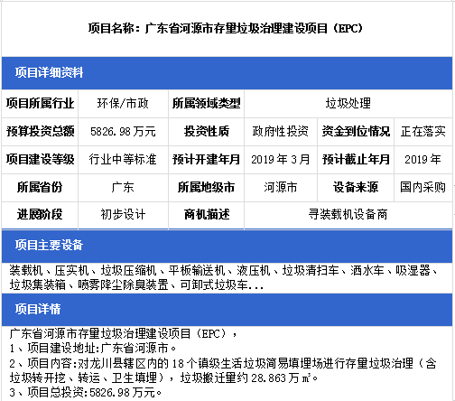 中項(xiàng)網(wǎng)獨(dú)家授權(quán)北極星固廢網(wǎng)發(fā)布最新垃圾處理項(xiàng)目(2019年3月18日更新),其中包括垃圾填埋場項(xiàng)目、城鄉(xiāng)一體化垃圾處理轉(zhuǎn)運(yùn)站項(xiàng)目等垃圾處理項(xiàng)目。具體內(nèi)容如下: