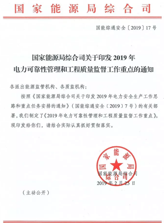 日前國家能源局綜合司印發(fā)了,《關于印發(fā)2019電力可靠性管理和工程質(zhì)量監(jiān)督工作重點通知》,按照《國家能源局綜合司關于印發(fā)2019年電力安全生產(chǎn)工作思路和重點任務安排的通知》(國能綜通安全【2019】7號)的有關部署,國家能源局綜合司制定了《2019年電力可靠性管理和工程質(zhì)量監(jiān)督工作重點》。文件提出,...