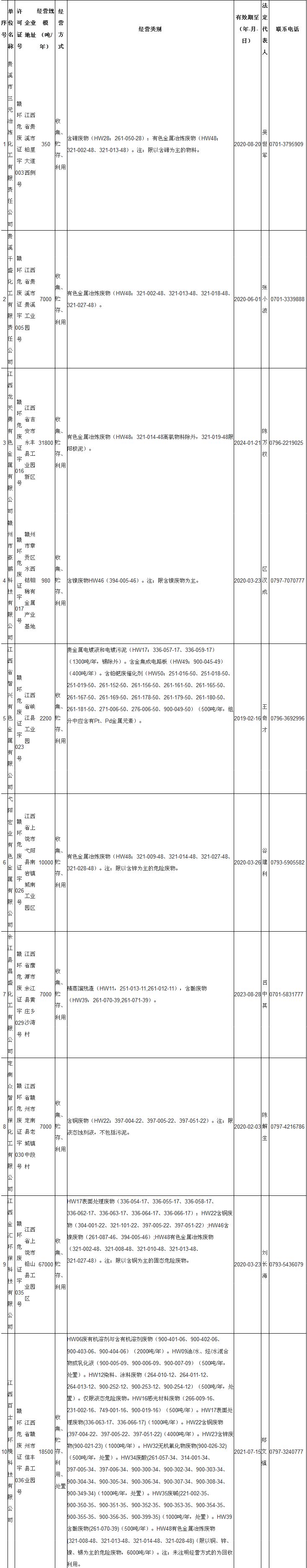 日前江西省生態(tài)環(huán)境廳發(fā)布了危險(xiǎn)廢物經(jīng)營(yíng)許可證名單,其中涉及69家公司,具體內(nèi)容如下: