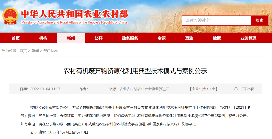 為貫徹落實《農(nóng)村人居環(huán)境整治提升五年行動方案(2021—2025年)》部署要求,提高農(nóng)村易腐垃圾、廁所糞污等有機廢棄物無害化處理和資源化利用水平,強化實用技術(shù)供給,農(nóng)業(yè)農(nóng)村部、國家鄉(xiāng)村振興局在各?。▍^(qū)、市)推薦的基礎(chǔ)上,經(jīng)專家評審、實地核查,遴選了4種農(nóng)村有機廢棄物資源化利用典型技術(shù)模式和7個典型案...