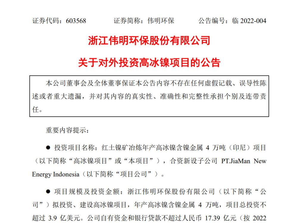 環(huán)保企業(yè)進軍新能源領(lǐng)域的越來越多了。1月5日晚間,偉明環(huán)保發(fā)布公告稱進軍新能源市場,擬在印尼投建高冰鎳項目。前一天,1月4日,旺能環(huán)境股份有限公司也發(fā)布公告,擬通過收購方式,布局新能源鋰電材料綠色循環(huán)再利用產(chǎn)業(yè)。再往前的2021年12月8日晚間,中國天楹還發(fā)布公告稱,以自有資金或自籌資金方式成立江蘇...