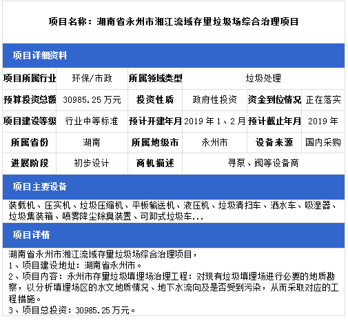 中項網(wǎng)獨家授權(quán)北極星固廢網(wǎng)發(fā)布最新垃圾處理項目(2018年12月18日更新),其中包括生活垃圾無害化處理設(shè)置建設(shè)項目、農(nóng)村生活垃圾治理項目、生活垃圾衛(wèi)生填埋場項目等。具體內(nèi)容如下: