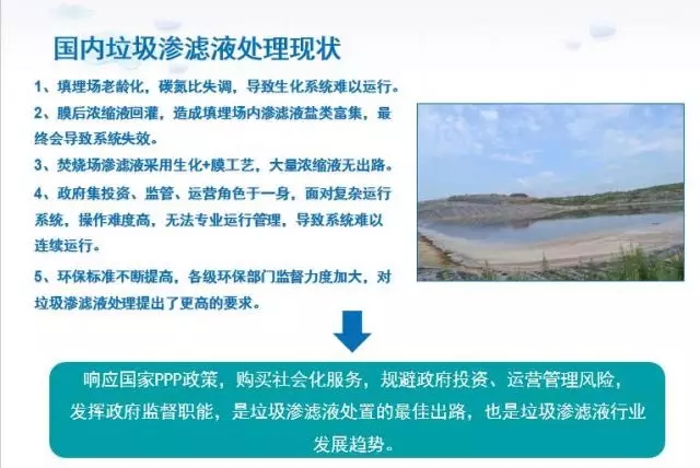 在2017年5月中國(guó)環(huán)聯(lián)第一屆固廢技術(shù)論壇上,大連廣泰源環(huán)??萍加邢薰緦?duì)我國(guó)滲濾液處理現(xiàn)狀進(jìn)行了總結(jié),并對(duì)垃圾滲濾液的處置提出了響應(yīng)國(guó)家PPP政策,購(gòu)買社會(huì)化服務(wù),規(guī)避政府投資、運(yùn)營(yíng)管理風(fēng)險(xiǎn),發(fā)揮政府監(jiān)督職能,是垃圾滲濾液處置的行業(yè)發(fā)展趨勢(shì)。