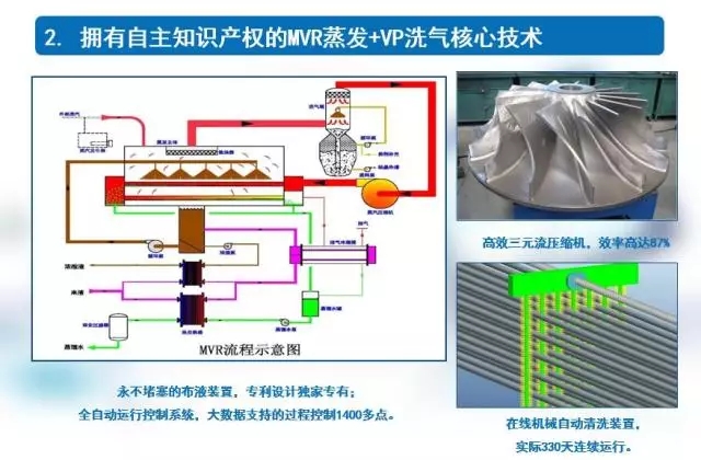 2. 自主知識(shí)產(chǎn)權(quán)的MVR蒸發(fā)+VP洗氣技術(shù)