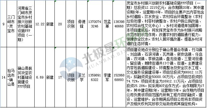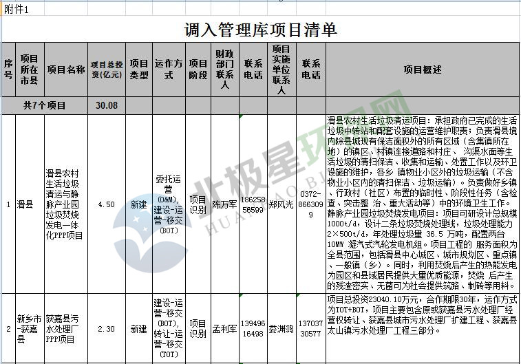 根據(jù)《河南省財政廳PPP項目庫入庫指南》調(diào)整項目庫的工作安排及最新政策動向,我中心對截止8月底市縣申報進入管理庫及儲備清單的項目進行了審查,現(xiàn)將本次調(diào)整結(jié)果予以公告。其中:調(diào)入項目管理庫項目7個,總投資30億元;調(diào)入項目儲備清單項目18個,總投資448億元。