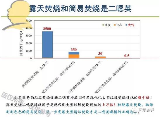 日本、英國的研究表明,膳食攝入是人體二噁英暴露的主要途徑,占總攝入量的98%以上,呼吸攝入不足1%,因此從二惡英風(fēng)險(xiǎn)控制角度出發(fā),垃圾焚燒廠可建在城市區(qū)域,應(yīng)盡可能遠(yuǎn)離農(nóng)牧水產(chǎn)區(qū)。近期南京大學(xué)的研究表明,垃圾焚燒二噁英致癌風(fēng)險(xiǎn)較可接受水平低1個(gè)數(shù)量級。由于簡易焚燒、露天焚燒的二噁英排放因子是現(xiàn)代化垃圾焚燒的數(shù)千倍至上萬倍,我國在普遍推行垃圾分類制度、完善垃圾分類處理系統(tǒng)過程中,應(yīng)堅(jiān)決杜絕露天焚燒、取締簡易焚燒,堅(jiān)定不移地發(fā)展現(xiàn)代化大型清潔垃圾焚燒。