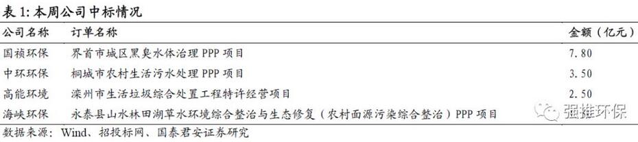 根據(jù)公告與招投標(biāo)信息統(tǒng)計(jì),本周環(huán)保公司中新增訂單4單、中標(biāo)總金額15.3億;新增訂單前三名分別為國(guó)禎環(huán)保、中環(huán)環(huán)保和高能環(huán)境。