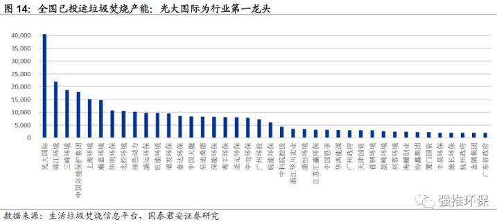光大國(guó)際、錦江環(huán)境、三峰環(huán)境為行業(yè)已投運(yùn)產(chǎn)能前三的公司。
