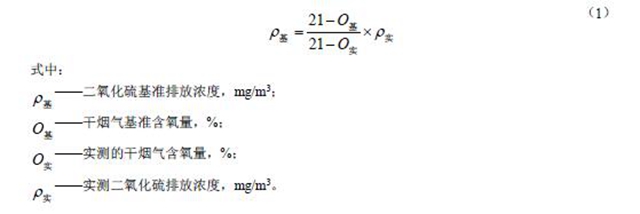 5.1.3 天然氣凈化廠硫磺回收裝置尾氣排氣筒的實測二氧化硫排放濃度,須換算成基準含氧量為3%的大氣污染物基準排放濃度,并與排放限值比較判定排放是否達標。大氣污染物基準排放濃度按公式(1)進行計算。