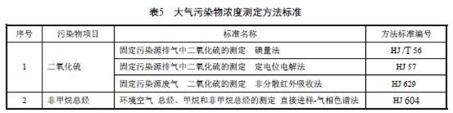 6.3.2 大氣污染物濃度的測定采用表5所列的方法標準。