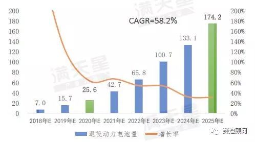 2025年動力電池退役量將達到174.2GWh