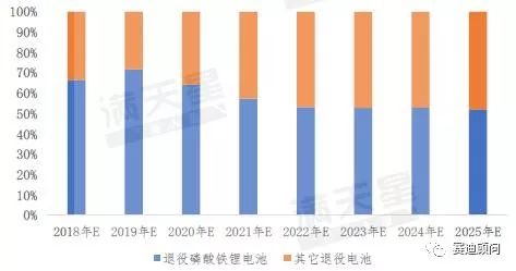 數(shù)據(jù)來源:賽迪顧問,2018.112025年之前退役電池中磷酸鐵鋰電池占比較大