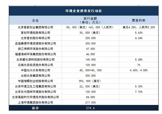 據(jù)權(quán)威媒體不完全統(tǒng)計(jì),2018年以來,環(huán)保上市企業(yè)的債券發(fā)行規(guī)模至少達(dá)到274.6億元人民幣,跟小編來具體了解一下吧~