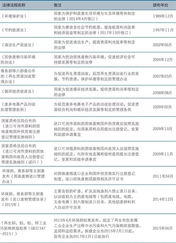 再生鋁行業(yè)屬于資源再生和循環(huán)經(jīng)濟(jì)的范疇,行業(yè)的良好發(fā)展具有重大的經(jīng) 濟(jì)、社會和環(huán)境意義,是國家大力發(fā)展的行業(yè)之一。近幾年來,我國相繼出臺了大力鼓勵和支持循環(huán)經(jīng)濟(jì)、再生金屬行業(yè)發(fā)展的眾多政策性文件。