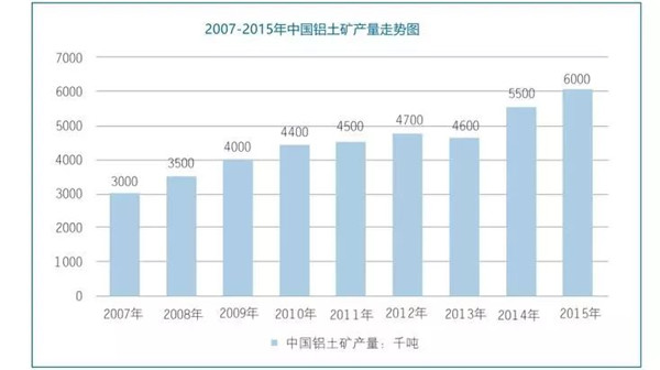 2015年中國鋁土礦產(chǎn)量為6000萬噸,占同期全球總產(chǎn)量的21.9%。按照同期中國鋁土礦資源儲量,中國鋁土礦靜態(tài)可采年限僅為14年,遠(yuǎn)低于全球120年的平均水平,加強(qiáng)資源的合理開發(fā)利用是我國鋁土礦產(chǎn)業(yè)乃至整個鋁業(yè)所面臨的重要問題。