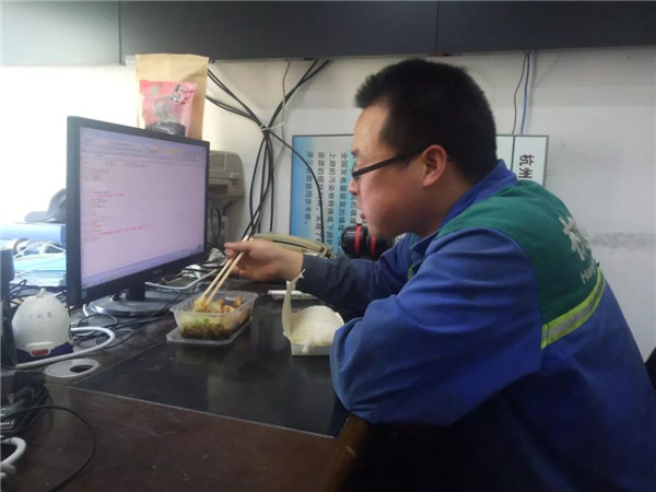 8時30分,在完成緊急搶修任務(wù)后,他邊啃面包,邊打開電腦處理OA文件,安排工作任務(wù)。