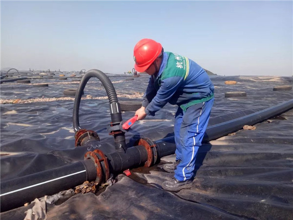 夏季高溫庫區(qū)膜的表面溫度高達(dá)70度以上,他打趣道:“千萬不能摔倒,不然撒點(diǎn)孜然就變成一頭烤乳豬了”。