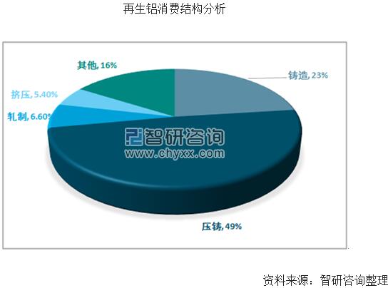 從再生鋁的消費(fèi)結(jié)構(gòu)來(lái)看,用于壓鑄件的再生鋁依然是占絕大多數(shù),2017年壓鑄件對(duì)再生鋁的消費(fèi)量占比約為49%左右,鑄造件為23%。壓鑄件主要用于汽車、機(jī)械、五金中的各種零部件,由于其尺寸精確,一致性高,得到廣泛的應(yīng)用,而鑄造件則主要用于機(jī)械產(chǎn)品外殼和建筑業(yè)中,對(duì)產(chǎn)品的精度相對(duì)較低,且對(duì)材質(zhì)的要求相對(duì)較小,具有較大的應(yīng)用前景。