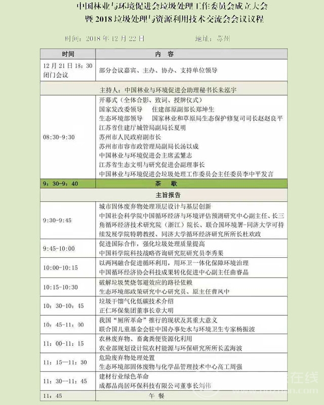 用技術(shù)力量推動固廢處理產(chǎn)業(yè)發(fā)展,中國林業(yè)與環(huán)境促進會垃圾處理工作委員會成立大會暨2018垃圾處理與資源利用技術(shù)交流會,虛席以待,期待您的加入。