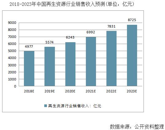 2016年我國再生資源行業(yè)實(shí)現(xiàn)銷售收入3967.3億元,同比增長7.05%。根據(jù)當(dāng)前國內(nèi)外經(jīng)濟(jì)形勢以及2016年的銷售收入基數(shù),結(jié)合2011-2016年中國再生資源行業(yè)銷售收入數(shù)據(jù)及中國經(jīng)濟(jì)增長數(shù)據(jù),預(yù)計(jì)到2023年我國再生資源行業(yè)銷售收入將超過8700億元,增長幅度將在12%左右的水平。