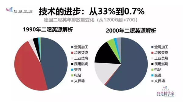 公眾對于污染物質(zhì)的擔(dān)憂、抵抗和集會游行,從某種意義上來說,推動了更嚴(yán)格的環(huán)境法律的推出以及環(huán)境標(biāo)準(zhǔn)的提高,以及技術(shù)的進步和工藝的改進。1990年到2000年間德國二噁英的源解析給我們提供了證據(jù):在1990年,全德國一年產(chǎn)生大概1200克的二噁英,其中來自垃圾焚燒的大概占33%。隨著技術(shù)的進步和標(biāo)準(zhǔn)的提高,到2000年整個德國二噁英的排放量下降到低于70克,其中來自于垃圾焚燒裝置的排放只占了大概0.7%,這是一個非常低的比例。