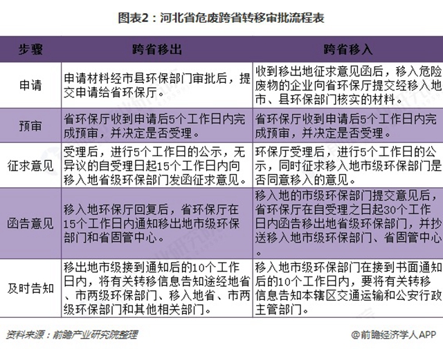 危廢產(chǎn)生量和工業(yè)發(fā)達(dá)程度緊密相關(guān),目前全國(guó)危險(xiǎn)廢物經(jīng)營(yíng)許可證數(shù)量集中于長(zhǎng)三角和珠三角區(qū)域,危廢處理處臵的區(qū)域性比較明顯,且我國(guó)對(duì)于跨省轉(zhuǎn)移危廢有非常嚴(yán)格的限制措施與程序,進(jìn)一步加強(qiáng)了危廢處理的區(qū)域性,導(dǎo)致產(chǎn)能不匹配問(wèn)題不能通過(guò)危廢轉(zhuǎn)移來(lái)解決。以河北省為例,危險(xiǎn)廢物轉(zhuǎn)移需要五個(gè)審批步驟,同時(shí)經(jīng)過(guò)省級(jí)和市縣級(jí)相關(guān)部門同意才可進(jìn)行轉(zhuǎn)移。